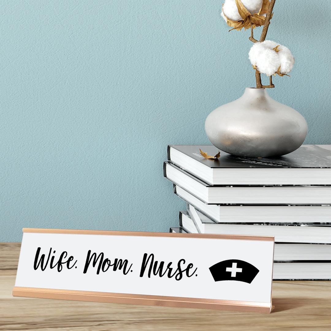 Wife. Mom. Nurse. Desk Sign, novelty nameplate (2 x 8")